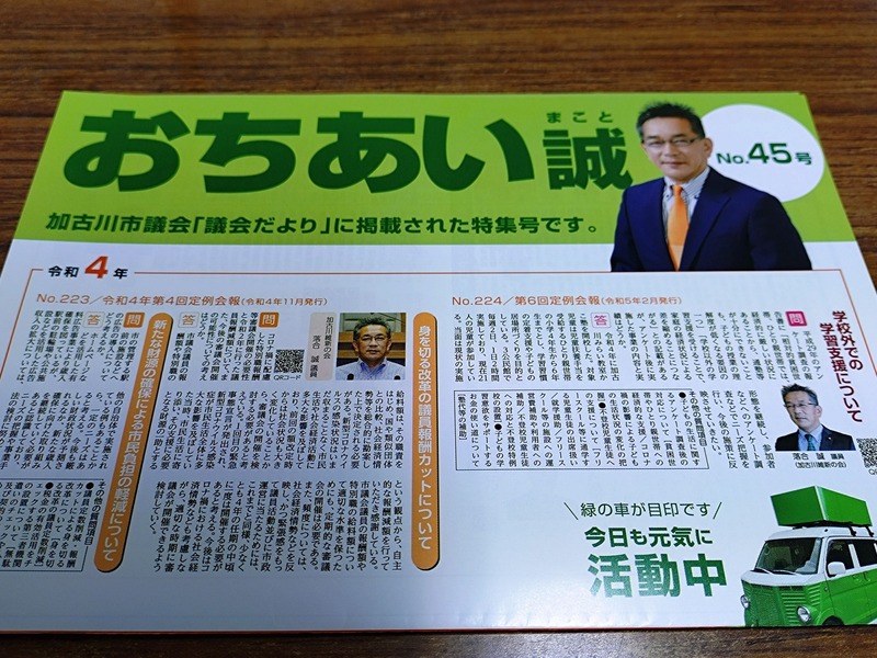 ホーム>政党・政治家>おちあい 誠 (オチアイ マコト)>市政報告の45号ができてきました。
