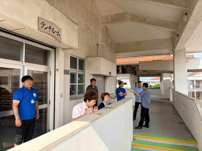 昨年も視察した真喜良小学校では、当時校長先生からご指摘のあったコンクリート剥離など、安全面で危険性の高い箇所の改善が行われていました。一方で、ご要望のあったランチルームの空調設備については、まだ十分に改善が進んでいない状況も確認しました。
