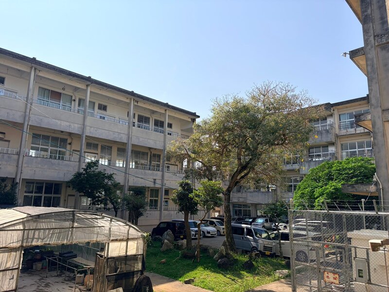 また、校舎についても築43年ほどが経過しており、老朽化した腰壁などが見られました。限られた条件の中で日々整備が行われている様子もうかがえましたが、引き続き改善が必要な状況でした。教頭先生からは、理科室など特別教室への空調整備の要望も伺いました。石垣市では小中学校の普通教室へのエアコン設置は完了しており、現在は特別教室への整備も順次進められています。引き続き、必要な予算確保を後押ししてまいります。