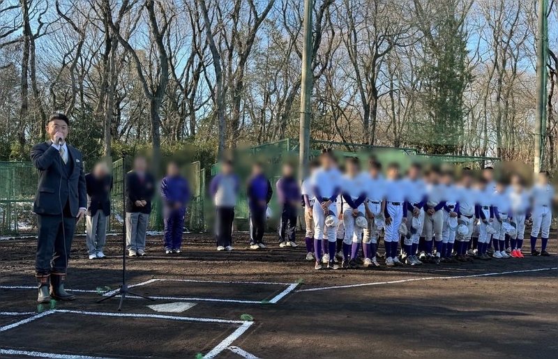 少年野球のグランド開き・必勝祈願祭から本年の仕事始めです。前日降った御降り残る冷気厳しい中、神事が厳かに執り行われました。今年一年のチームの活躍を祈念するとともに、自身の気持ちも引き締まりました。