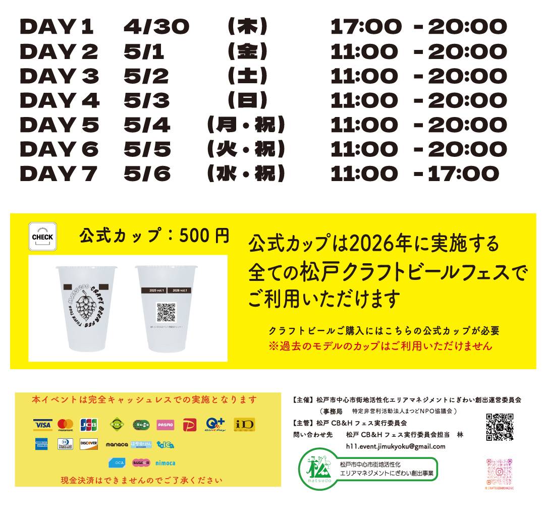 ※ビール購入は2026公式カップ必須#松戸クラフトビールフェス #クラフトビール飲むなら松戸 #はしご酒 pic.twitter.com/7c1QwwAlMk— 松戸クラフトビールフェス (@Matsudocra1104) March 31, 2026