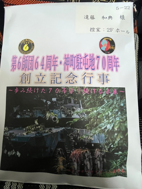 【第6師団・神町駐屯地創立記念行事】隊員皆様へ日頃の感謝をお伝えするために表題式典に参列。