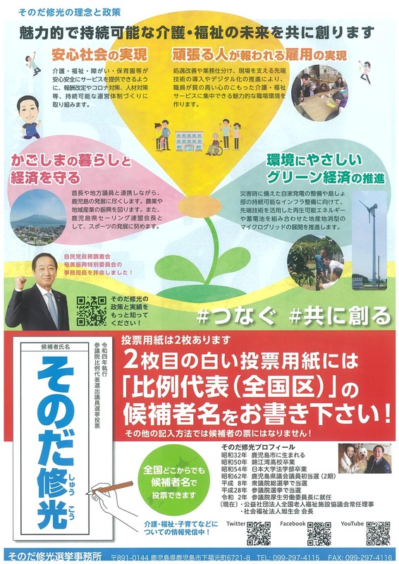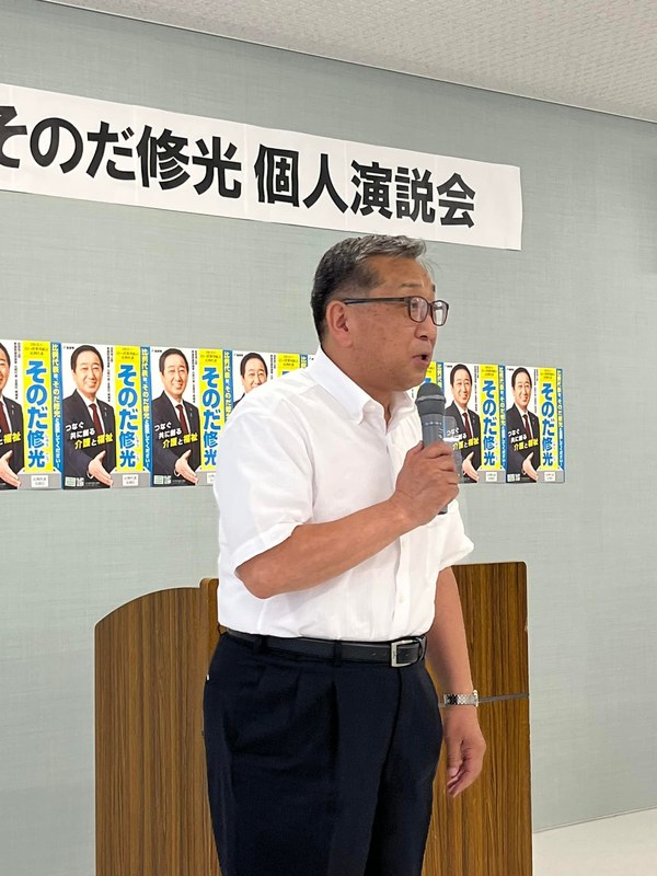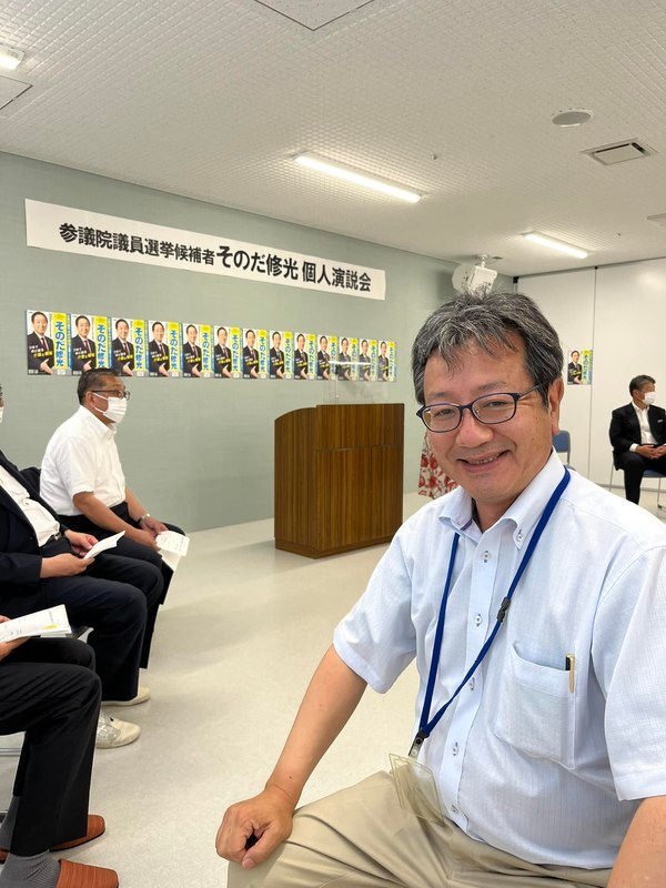 【比例代表候補者 そのだ修光 個人演説会】 表題演説会が地元地区で開催されたので担当議員 奥山誠治県議と共に出席😊 そのだ修光候補者は介護・福祉の専門家。介護現場福祉現場を熟知された貴重な候補者です。2期目に臨まれています。選挙区 大内りか と共にガンバロー‼️