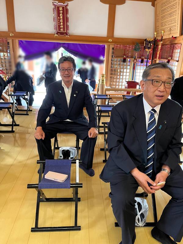 事務所で朝礼の後は山形市十日町に鎮座する歌懸稲荷神社例祭に参列。新型コロナの影響で3年振りの参列開催になりました。奥山誠治県議と共に。