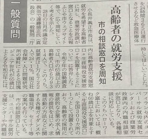 県では富士総合庁舎において高齢者就労相談会を初開催した 本市でも担当者が直接関係者に繋ぐなどの機能を発揮している