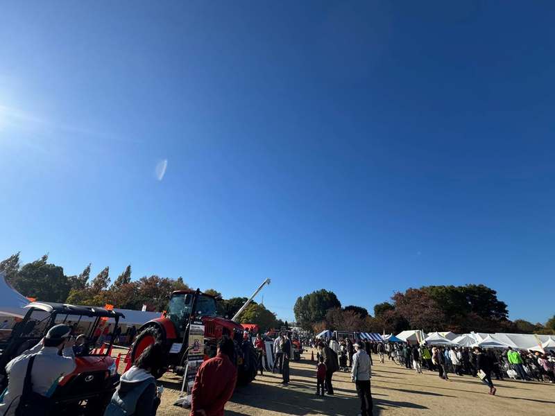 朝からたくさんの方が来られ、採れたて野菜の購入や、飲食ブース、農機の展示などで大賑わいです。