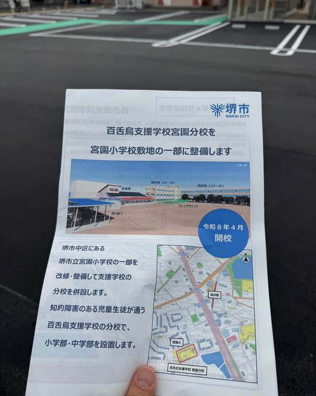 先日、百舌鳥支援学校宮園分校を視察しました。 令和8年4月開校予定の新しい支援学校で、支援学校の教室不足など狭隘化の解消を目的に整備が進められています。