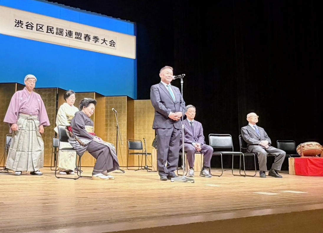 第69回渋谷区民謡連盟の春季大会に伺い、議長としてご挨拶いたしました。皆さんの温かい雰囲気の中で、地域に根ざした民謡・民舞の魅力や大切さを改めて感じる時間になりました。伝統・文化を守りながら、次の世代へつないでいこうという想いがとても印象的でした。