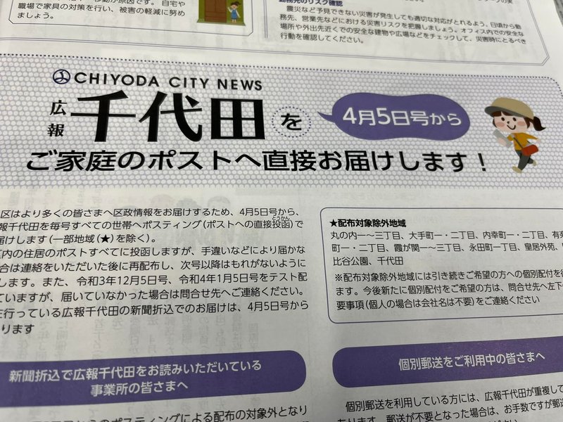 5日は区報の新聞折込み日、新年度からは各家庭のポストへ直接投函されます。より多くの区民の方へ情報が届きます。ちなみに、個人的な情報ですが、年末に更新したギネス認定証が届きました😊