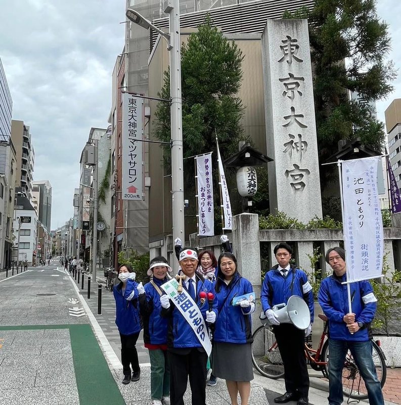 ホーム>政党・政治家>池田 とものり (イケダ トモノリ)>選挙戦最終日、整備された東京大神宮通り〜早稲田通りと歩いてご支持のお願いに回っています。