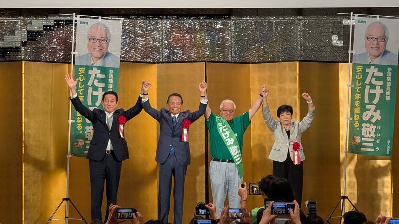 【#たけみ敬三 最終決起大会】 2000人の参加者。 #小池百合子 都知事 #岸田文雄 前総理 #麻生太郎 元総理による激励がありました。 社会保障制度の建て直しに必要な方です。 東京選挙区からは、 「たけみ敬三」を よろしくお願いします!
