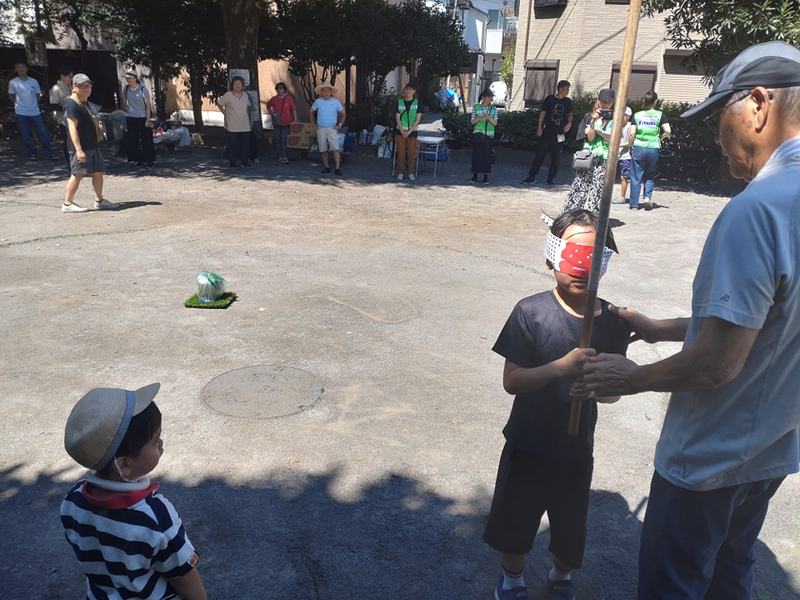 【地元町会すいか割り】 4年ぶり開催。 私は棒渡すのと、「前、右、左」などのナビ係。 多くの方々が参加し、子ども達は本当に喜んでました。 我が子は非力でスイカ叩き、私をまねたながら間違ったナビをやって、楽しんでいました。 暑いけど、ほのぼのした一時を過ごせました。