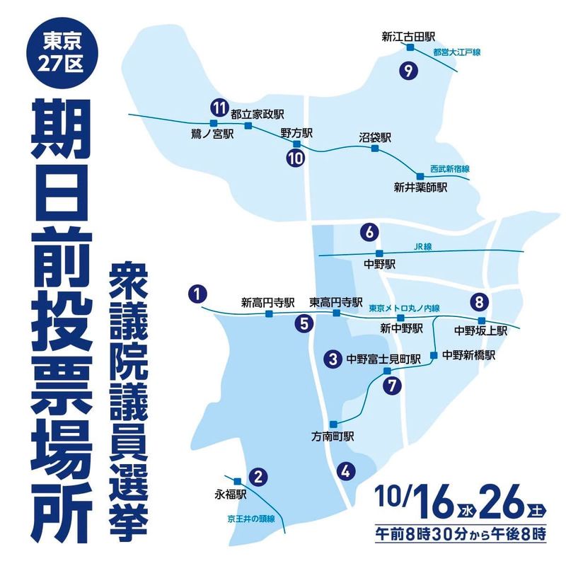 今回新区割りである27区の期日前投票所の場所を黒崎祐一事務所で独自作成しました!ぜひお近くの投票所へ行きましょう!