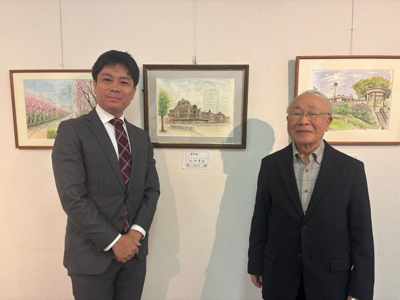 地域の見守りや学校の活動など様々地域貢献をしていただきつつ、公民館で絵画展を開催中とのことでお邪魔させていただきました。個人的にたくさんの想い出が詰まった「東京駅」の作品に、思わず足が止まります。歴史を見守ってきた赤レンガの力強さと、水彩の柔らかな光の表現が本当に素敵です。