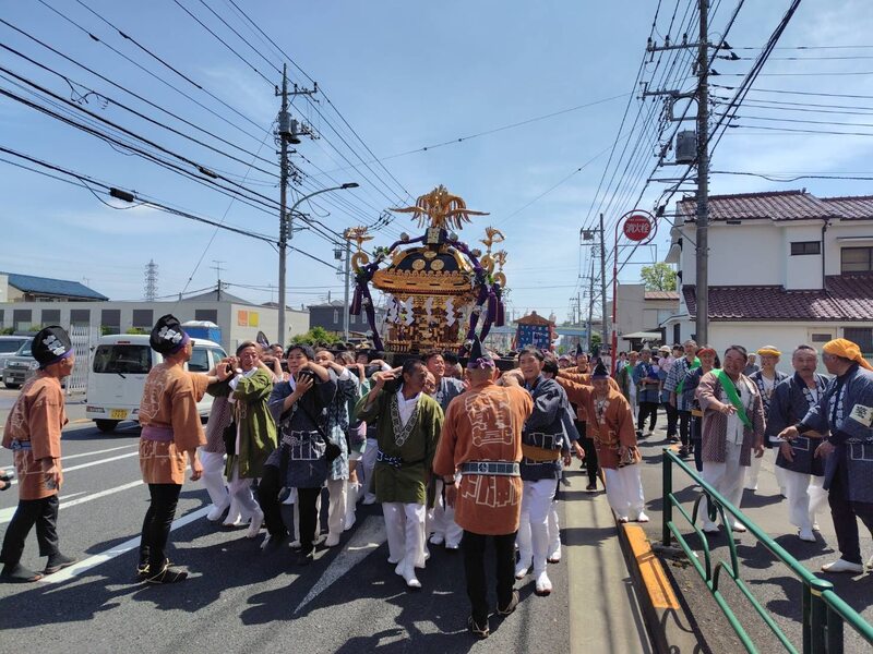 小平神明宮八雲祭渡御休憩中。 無病息災を祈願して午後もご協力よろしくお願いします! #お神輿 #小平神明宮