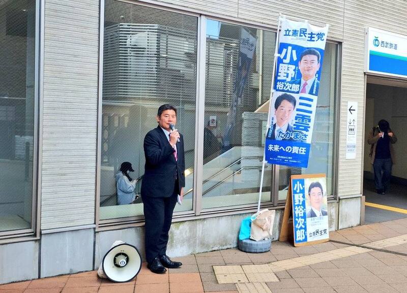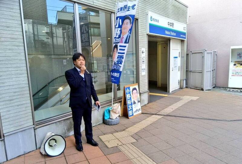 ホーム>政党・政治家>三雲 たかまさ (ミクモ タカマサ)>今朝は小野裕次郎区議と西武新宿線中井駅北口で街頭活動。