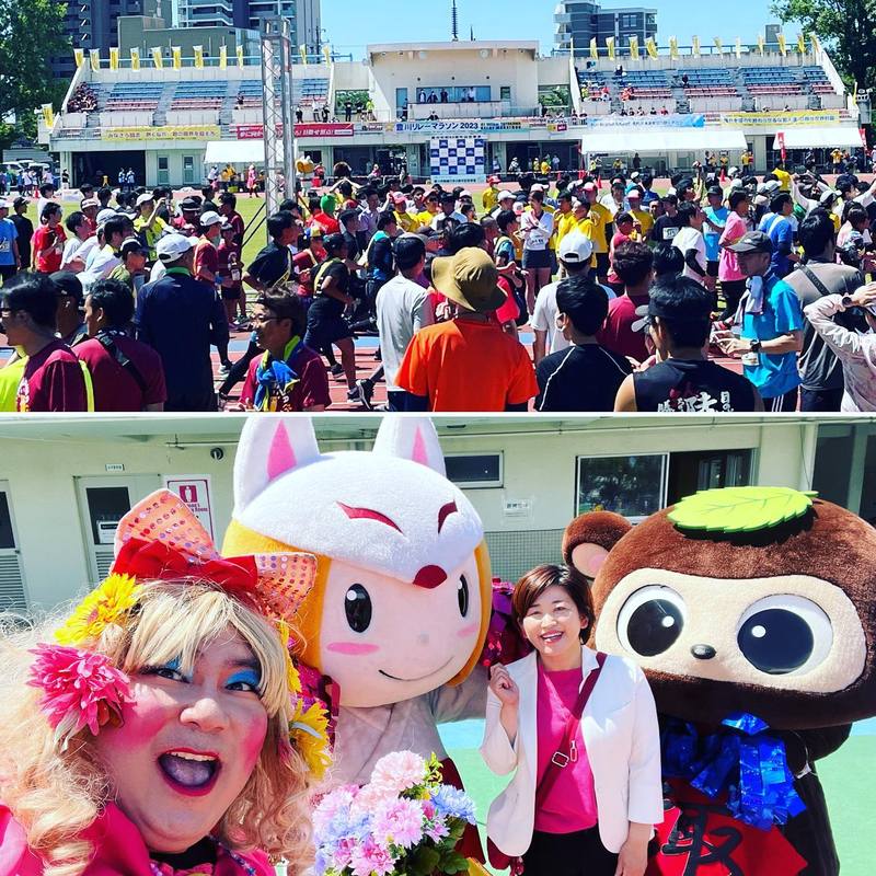 「豊川市リレーマラソン2023」の激励に伺いました☺️❣️かなりの参加人数で嬉しいですね☺️❣️会場に豊川市の誇るアイドルの(左から)キャサリン・狐娘(ここ)ちゃん・すわポンがいたので、一緒に写真を撮って頂きました☺️❣️ #豊川市 #豊川 #toyokawa #とよかわ