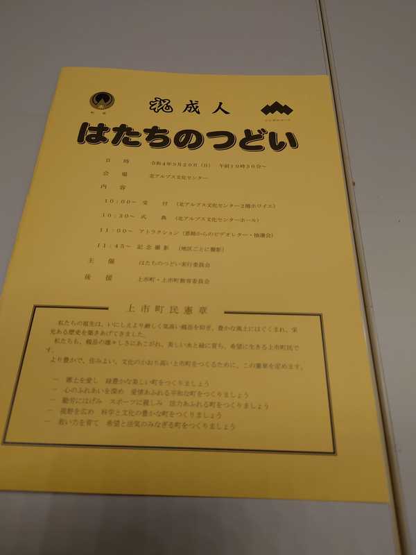 【上市町はたちのつどい】 上市町の成人式は豪雪の昨年より3月に開催されています。 そのせいか約220人の成人のうち180名が参加され高い参加率となっています。 祝辞のテーマは「ウェルビーイング」。皆さんの内側にあるダイヤモンドが輝きますように! しっかり応援して参りたいと思います!
