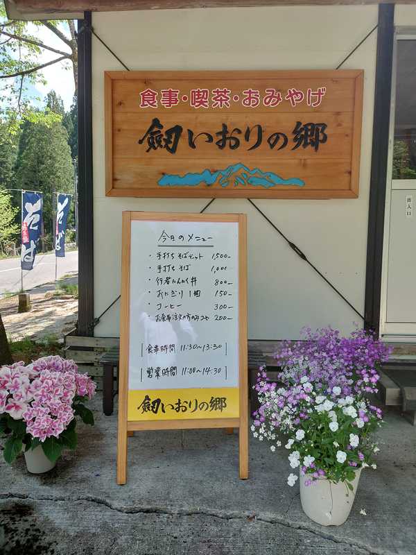 【劔いおりの郷オープン】 土日のみで二年ぶりに再開してます。 富山県未来塾を卒業された酒井勲さんが、熱い地元愛で、地元栽培のお蕎麦を提供。 山の清水で作られたお蕎麦は絶品でした!
