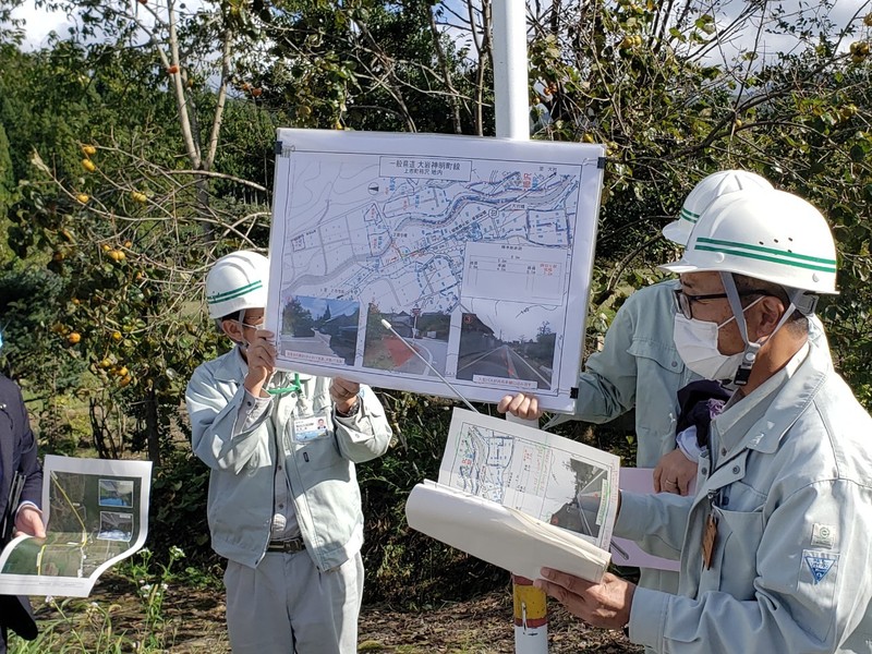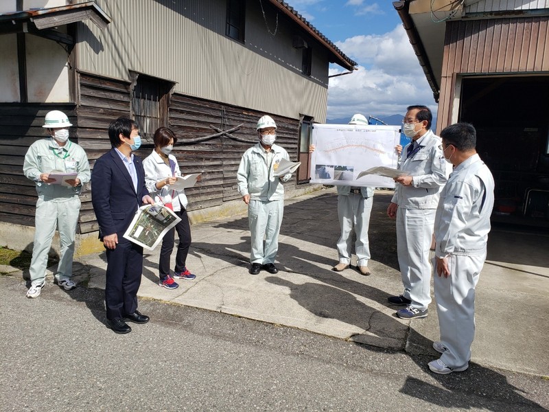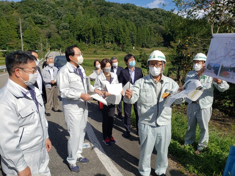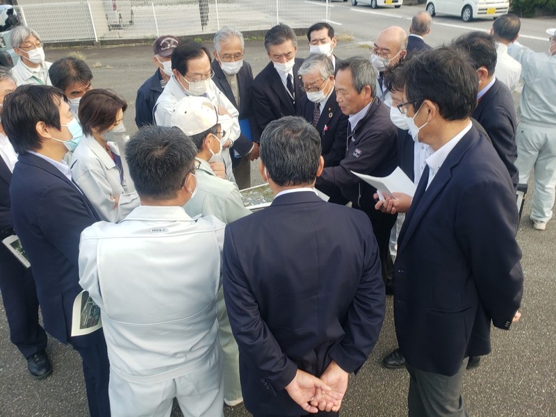 現地視察は、舟橋村・上市町・立山町・大沢野・婦中町の現場で、立山土木事務所の佐伯所長と富山土木センターの倉田所長さんから説明を伺いました。