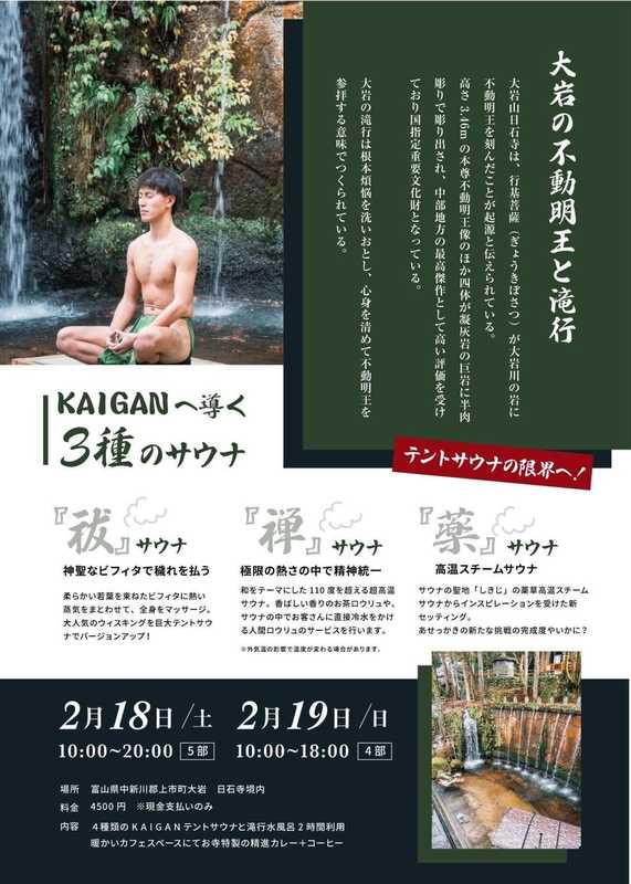 【大岩で滝修行とサウナ】 サウナ好きの方が、滝修行とテントサウナをドッキングさせる企画をされるそうです。 冷えた体を温める。滝で頭をスッキリさせる。 何回ループできるでしょう? すごい取り組みです♪