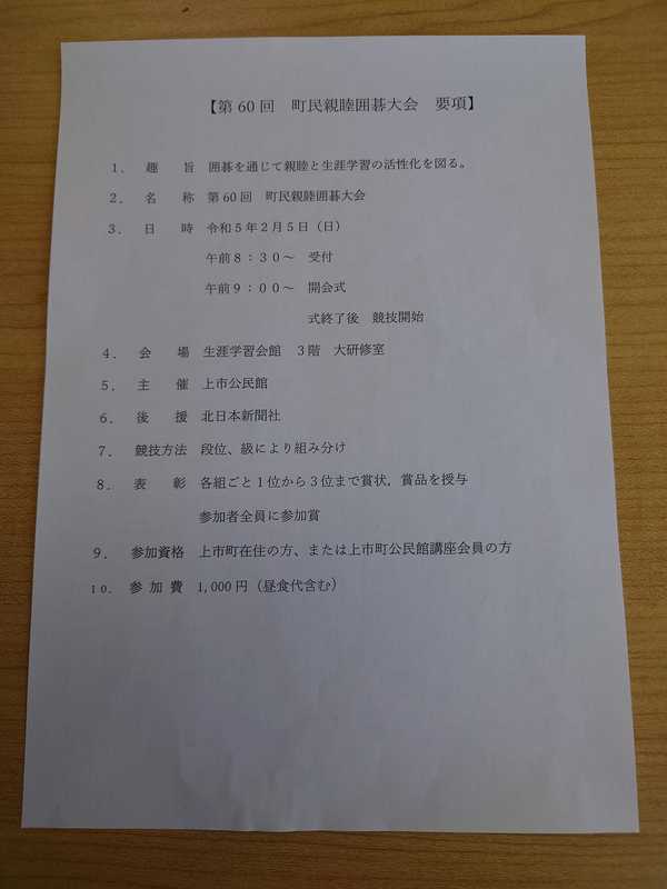 ホーム>政党・政治家>山崎 むねよし (ヤマザキ ムネヨシ)>【上市町町民親睦囲碁大会】囲碁大会は第60回になるそうです。
