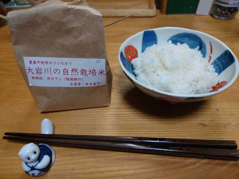 【有吉さんの自然栽培米】 上市町地域おこし協力隊の有吉さんが、自然栽培でコシヒカリを作られ、おすそ分けを頂きました。 それも天日乾燥です。 雑草にも負けずすくすく育ってくれました。 有吉さんの努力に敬意を表します。 とっても粘りが強くて美味しかったです! しあわせ〜♪