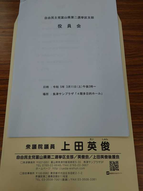ホーム>政党・政治家>山崎 むねよし (ヤマザキ ムネヨシ)>【自民党富山第二選挙支部役員会】令和5年度事業予定と若年層の会員拡大をテーマに役員会が開催され...