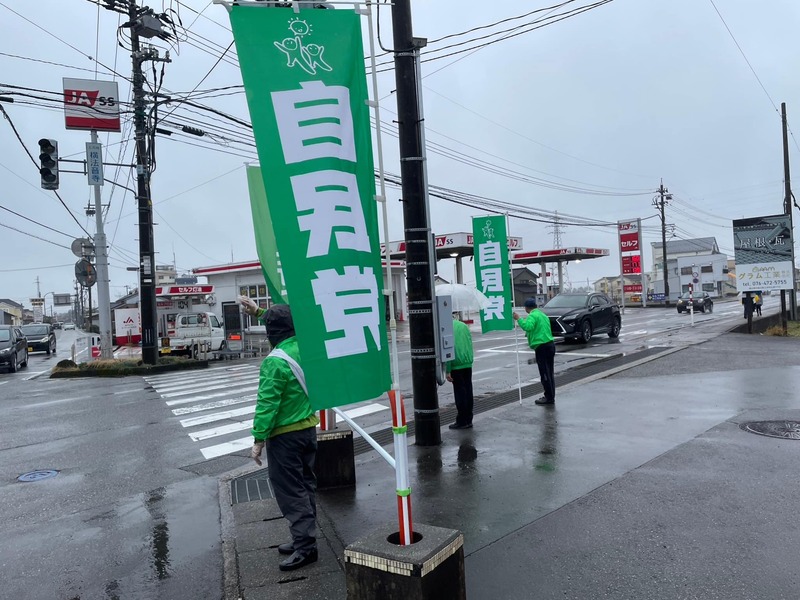 ホーム>政党・政治家>山崎 むねよし (ヤマザキ ムネヨシ)>【おはようございます!】上市町議会自民党会派の皆さんと、挨拶運動です。