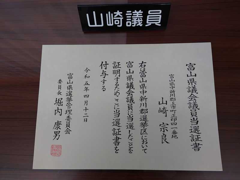 ホーム>政党・政治家>山崎 むねよし (ヤマザキ ムネヨシ)>【当選証書授与式】本日当選証書授与式が開催されました。