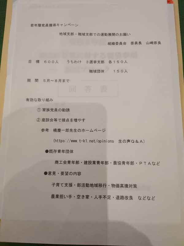 また、組織委員長として、若年層党員獲得キャンペーンのお願いをさせて頂きました。