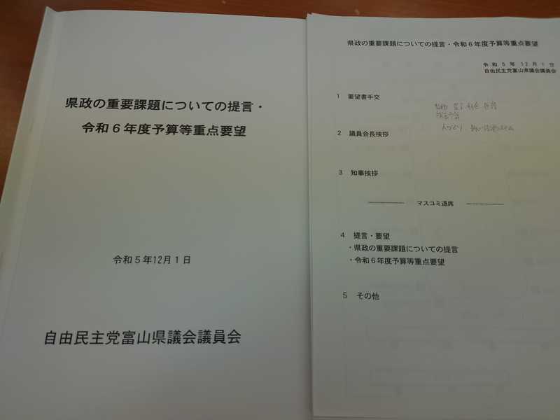 ホーム>政党・政治家>山崎 むねよし (ヤマザキ ムネヨシ)>【富山県令和6年度予算重点要望】自民党議員会より要望させて頂きました。