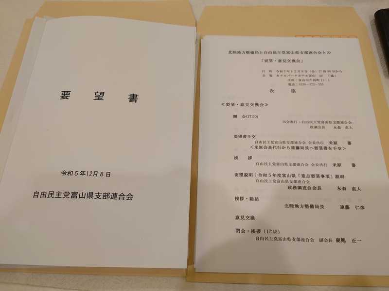 自民党富山県連役員と、北陸地方整備局の局長さん各所長さん方との懇談会に出席させて頂きました。