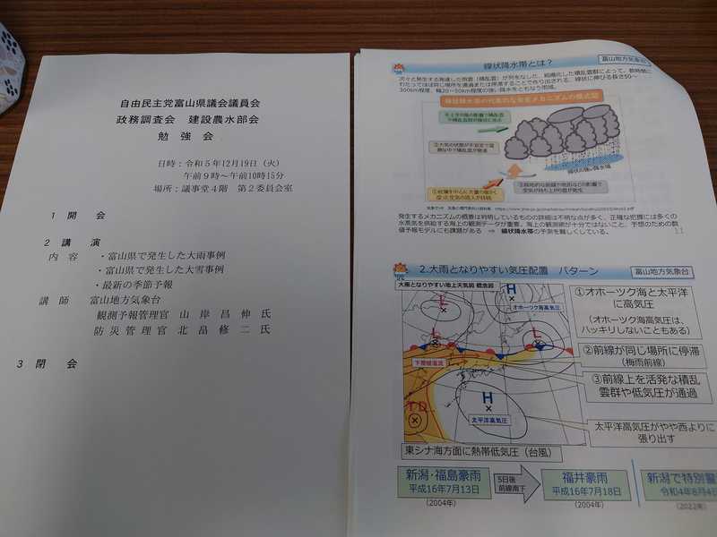 ホーム>政党・政治家>山崎 むねよし (ヤマザキ ムネヨシ)>【勉強会 富山地方気象台】建設農水部会の勉強会に、気象台の山岸さんと北畠さんにお越し頂きました。