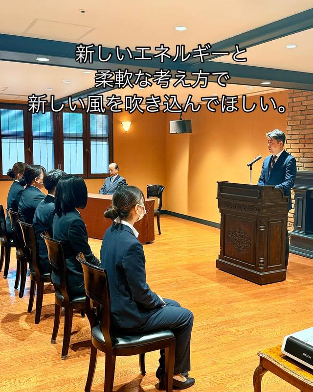 本日は山の手リゾート株式会社の入社式が執り行われ、5名のスタッフが新たな仲間になりました。