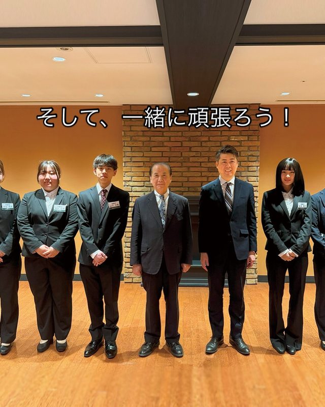 私からは、1885年に創業し、今年で140年となる山の手の歴史と、そのベースにある先人たちが守ってきた道後の歴史について、そして、エンブレムに込められた「安心と安全」、「夢と非日常」、「期待を超えるサー ビス」の提供を通じて、お客様の日常に元気を生み出し、地域と社会に貢献するという経営理念をお話させていただき、新しいエネルギーと柔軟な考え方で山の手リゾートに新しい風を吹き込んでほしいとお願いをさせていただきました。