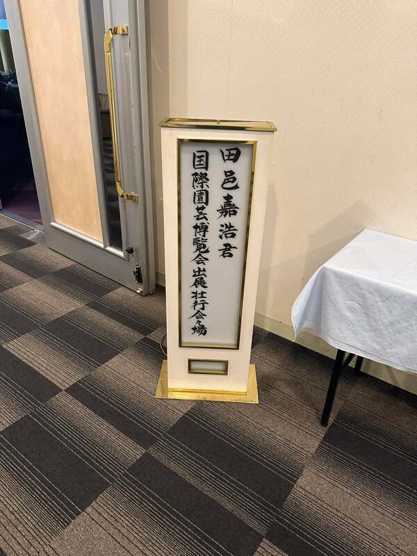 『田邑嘉浩君 2027年国際園芸博覧会単独出展壮行会』を有志の発起人の皆様とご一緒に開催させていただきましたところ、多くの皆様にお越しいただきました。