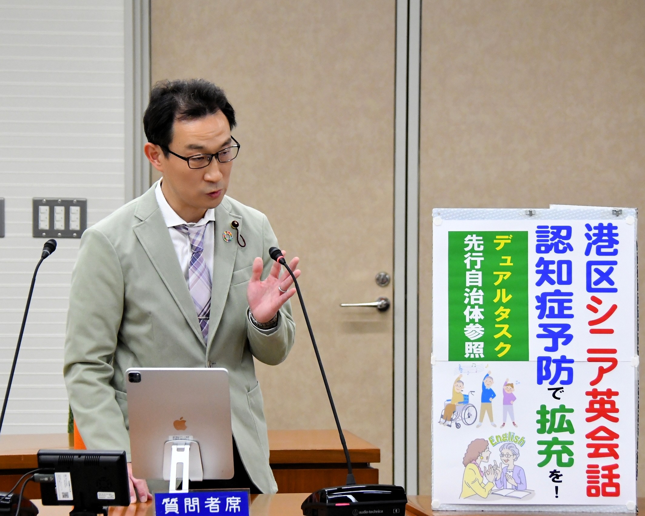 3月港区議会予算委で、文京区の 頭と身体を同時に使う(デュアルタスク)認知症予防の英会話講座実施訴え🗣️