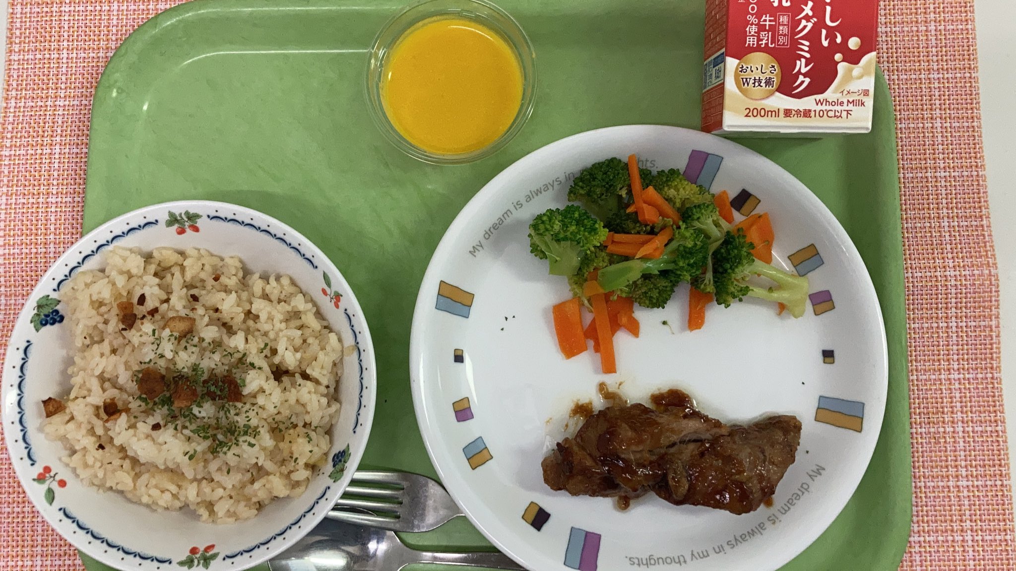 芝5「カルナバル」さん監修で、特製スペアリブ風がマンゴープリンとセットで、港南小では9/26に🍮