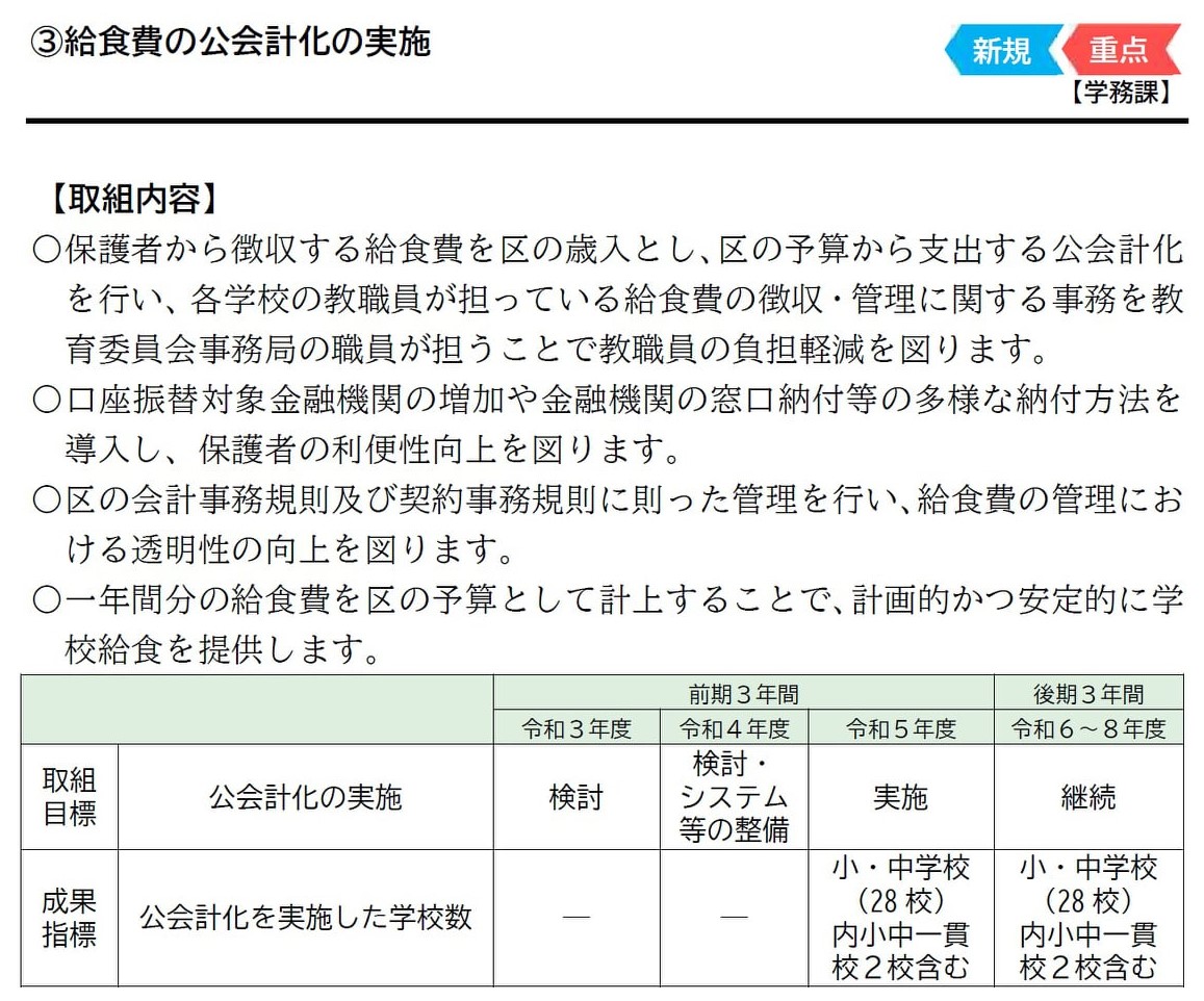 港区では、公明党の推進もあり、今年度から学校給食が「公会計化」され💰