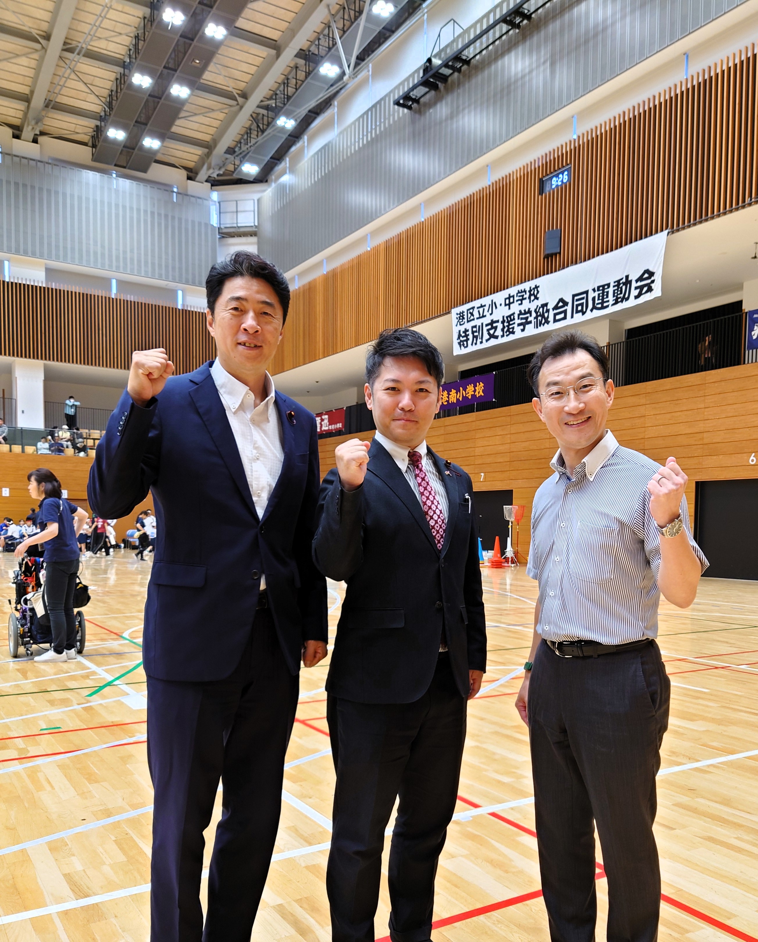 定例会前、区立小中学校特別支援学級の合同運動会の応援に📣
