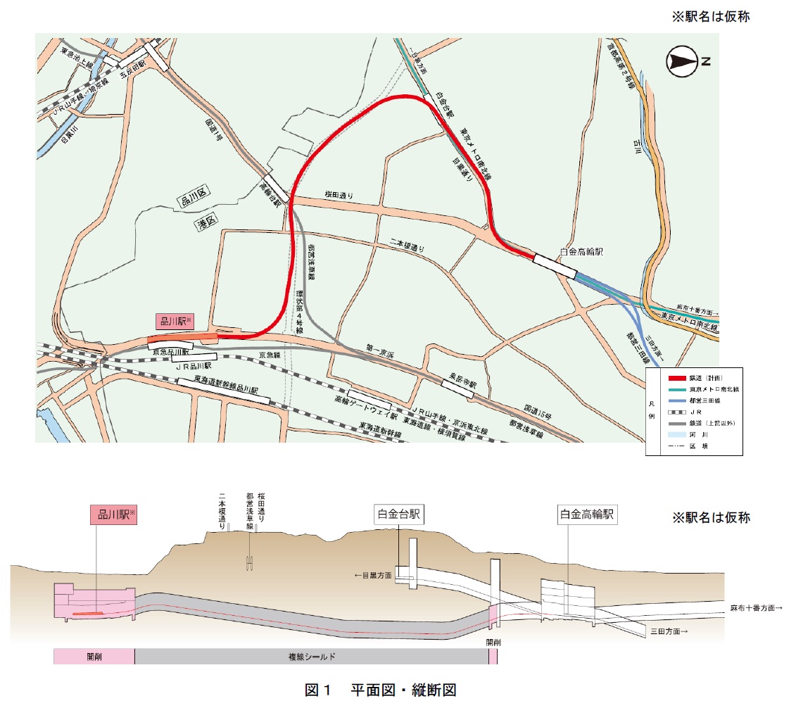 逆側の高輪口では、東京メトロ南北線が延伸する「分岐線」の、(仮称)品川駅が、