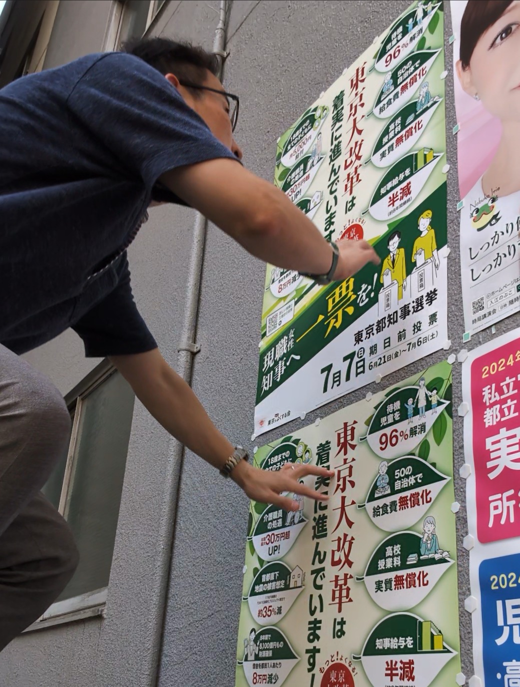 都知事選の御礼を述べながら、確認団体ポスターをはがして回り💦