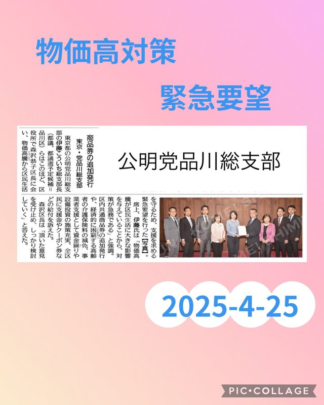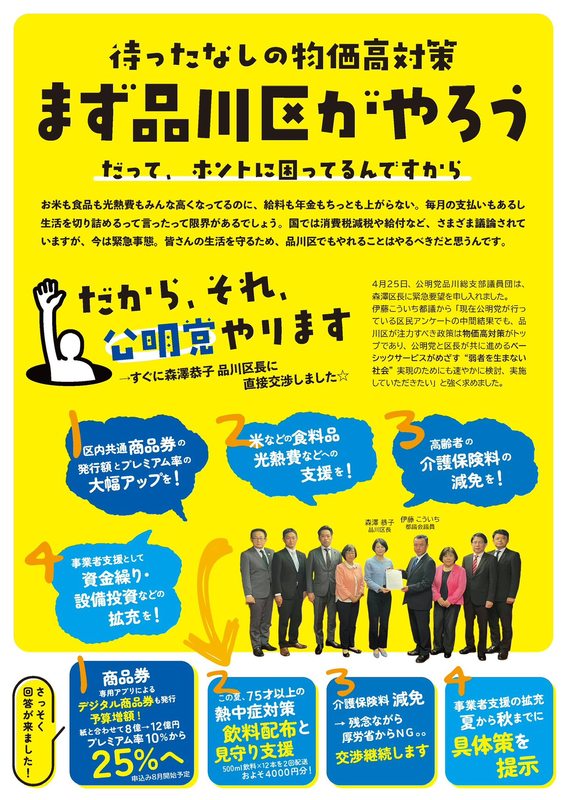 ホーム>政党・政治家>新妻 さえ子 (ニイヅマ サエコ)>【物価高対策緊急要望が実現❗️】昨日(5/16)午後は、森澤恭子品川区長の記者会見がありました。