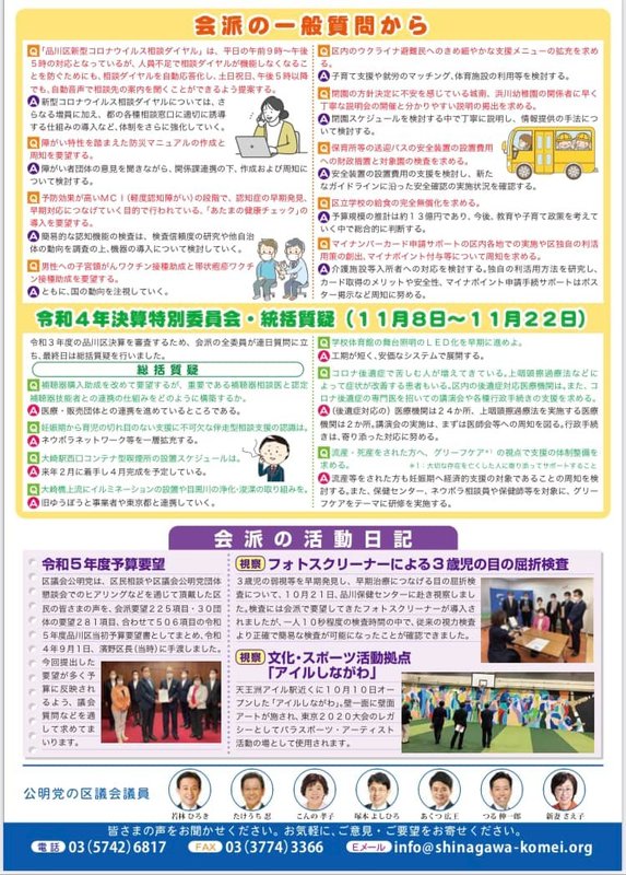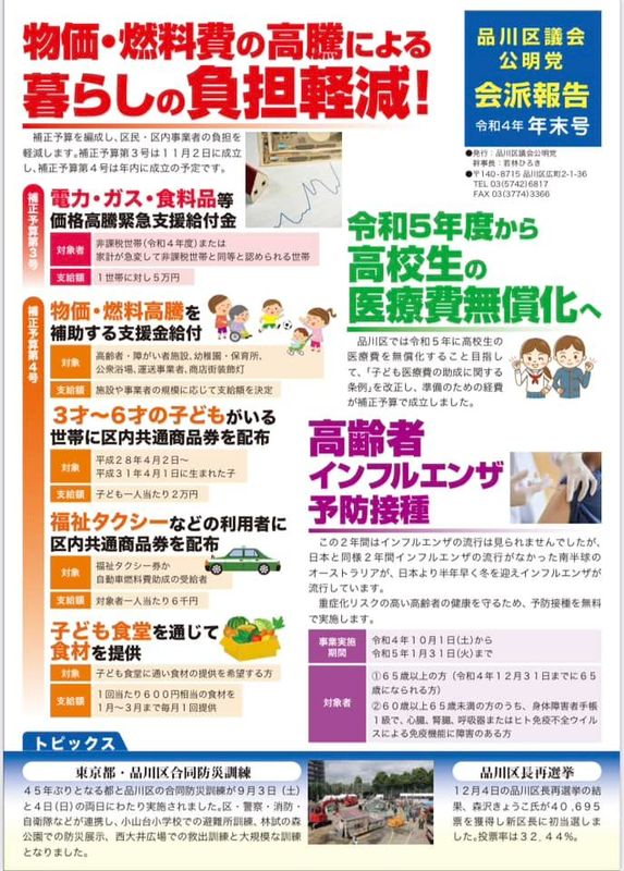 会派報告には、品川区議会公明党が推進してきた中から、一部を掲載しています。
