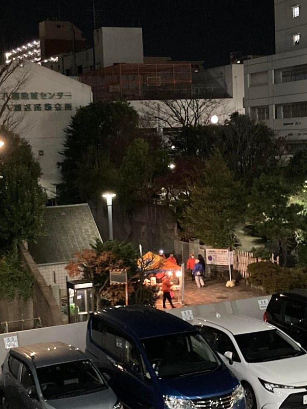 パトロールでは、「火の用心」と声をかけながら、八潮団地内を4コースに分かれ、通り過ぎる住民には、「こんばんは❗️」と挨拶しながら、注意を促しています。