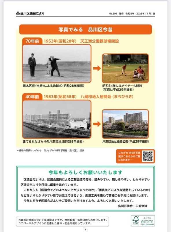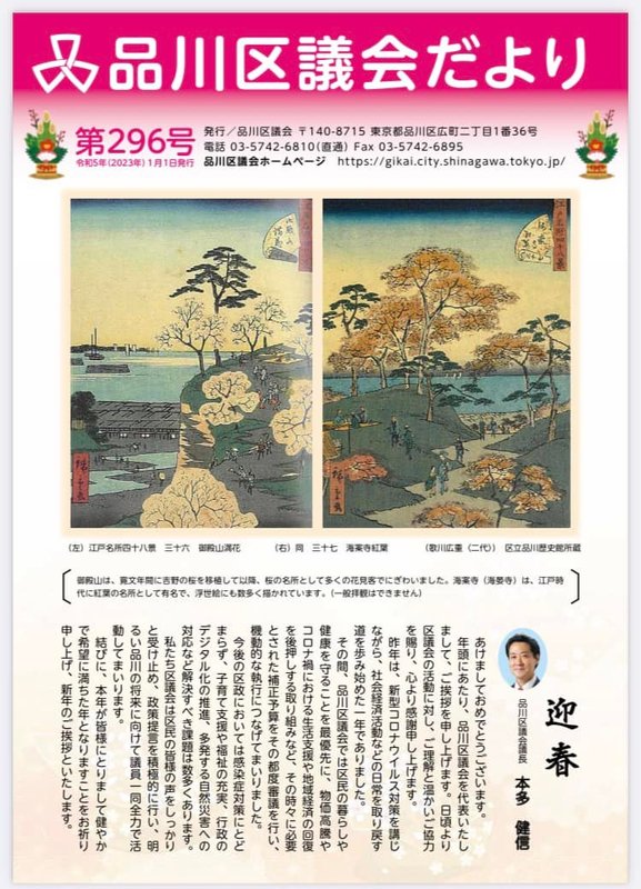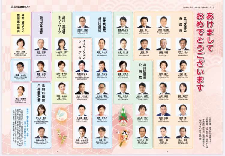 本日(1/1)付け一般紙に、#品川区議会だより が、折り込みされました。