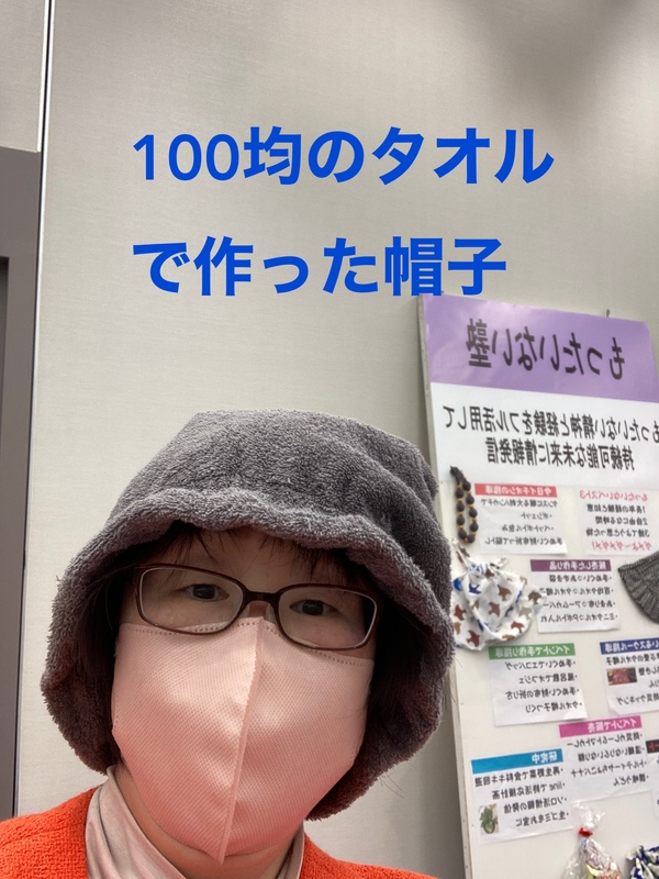 もったいない塾のブースでは、100均のタオルで作った帽子を試着させてもらいました😊