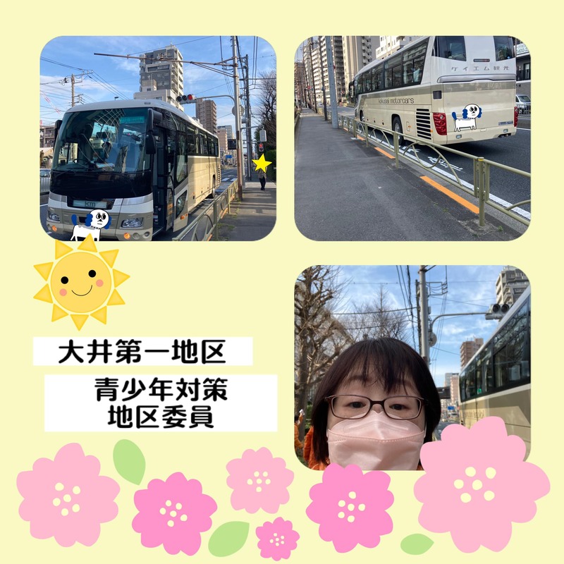 今朝は、大井第一地区の青少年対策地区委員のバス研修のお見送りからスタートしました。