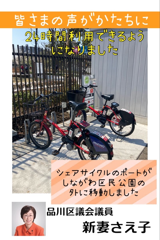 ホーム>政党・政治家>新妻 さえ子 (ニイヅマ サエコ)>【シェアサイクル🚲】